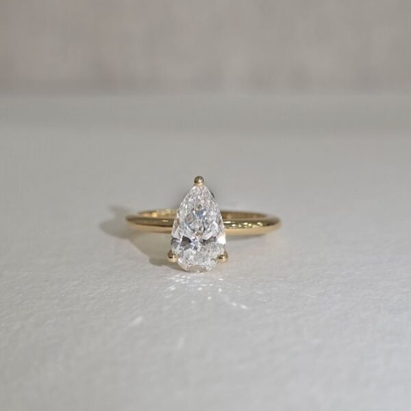 Gisela | Delicate Pear Solitaire with Hidden Halo in 18ct Yellow Gold