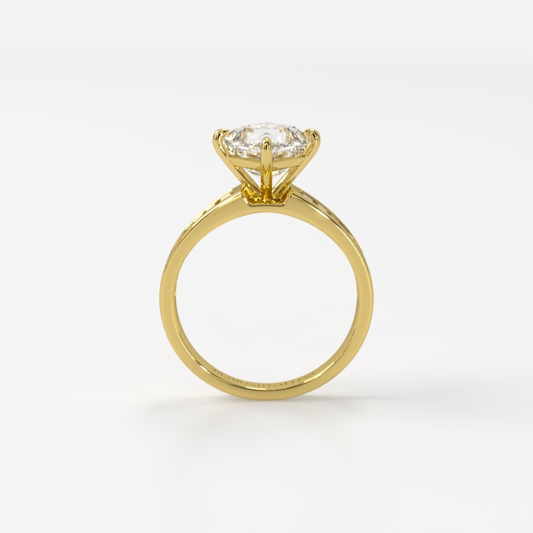 The Giovanna engagement ring exudes unparalleled luxury with its captivating lozenge-cut centre stone, elegantly framed by tapered baguette accents. The sophisticated channel setting enhances the brilliance of the centre stone, while the refined design showcases a perfect balance of modern boldness and timeless elegance. Crafted with the utmost precision, Giovanna is a statement of opulence and grace, designed for those who seek the extraordinary.