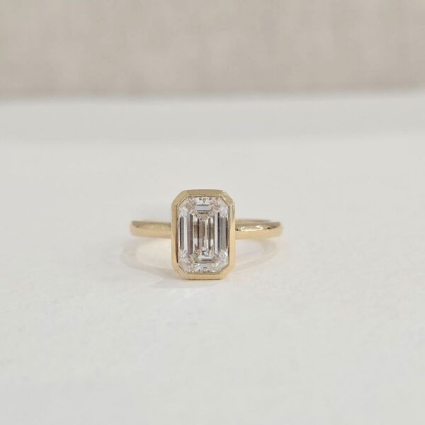 Jimena | 2.03ct Lab Emerald Diamond Cathedral Bezel Engagement Ring in 18ct Yellow Gold