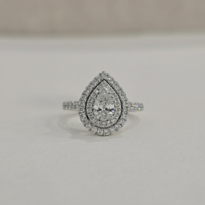 Sofia | 0.6ct Natural Pear Double Halo with Pave Band in 18ct White Gold