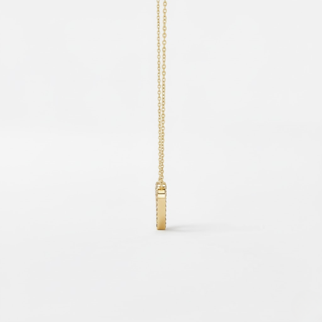 The heart-shaped pendant features a collection of round, natural diamonds 1.2 mm each, set to create a dazzling sparkle.