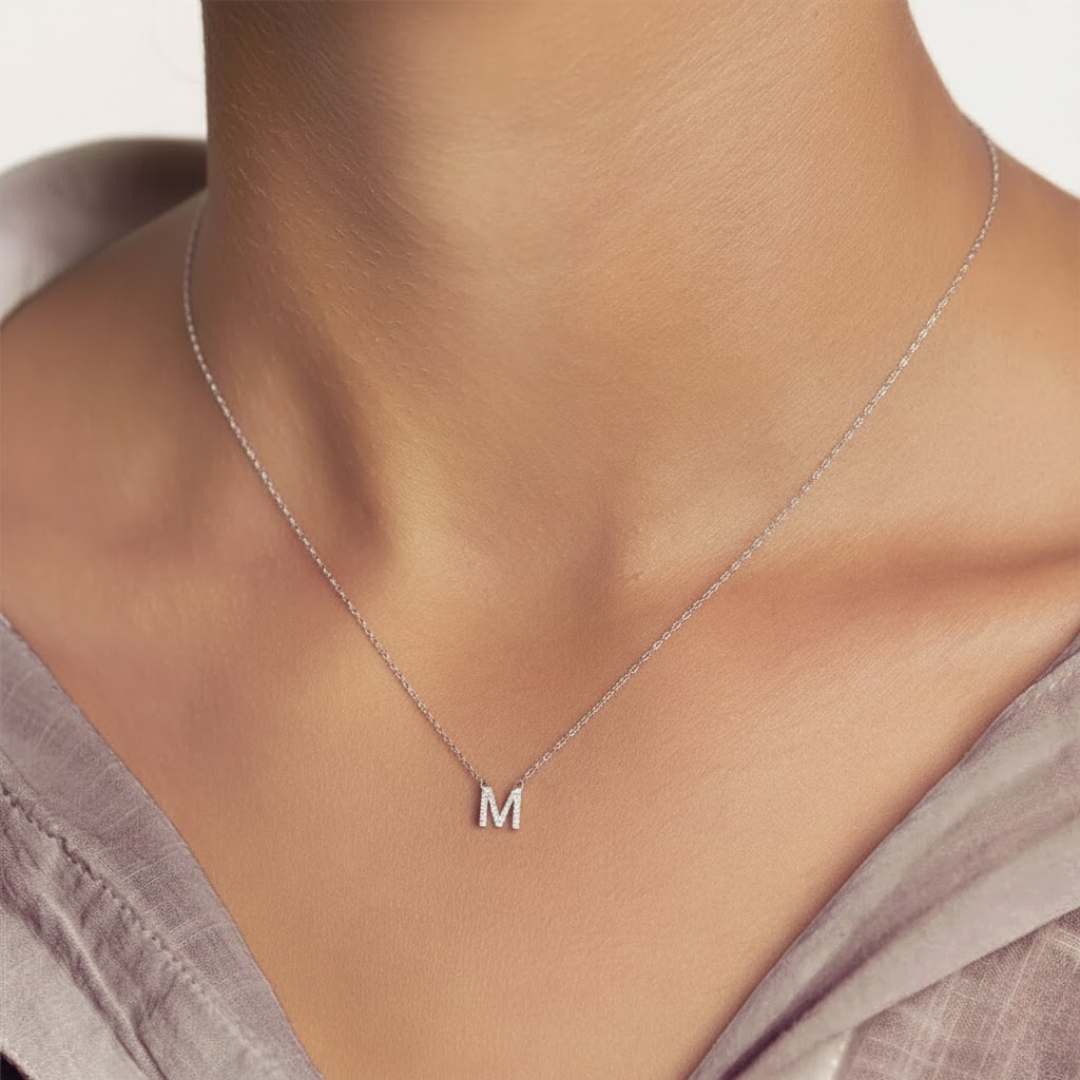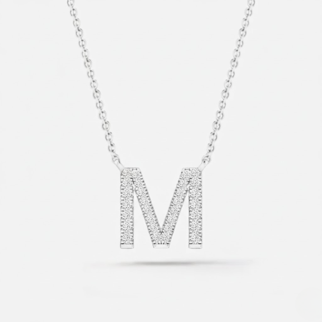 Elevate your everyday style with our Katherine 9ct Lab Diamond Initial Necklace. Expertly crafted in 9K white gold and adorned with shimmering lab-grown diamonds, it brings a refined touch of sophistication to any look. A perfect blend of luxury and sentiment, this timeless piece is designed to shine beautifully on its own or layered with your favourite chains