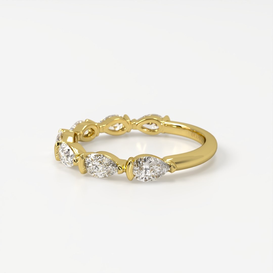 The Liliana ring is a refined band of pear-shaped diamonds, each carefully set to create a graceful flow of brilliance around the finger. With its elegant silhouette and continuous sparkle, this design makes a stunning wedding band, anniversary piece, or statement ring. Worn alone or stacked, Liliana embodies timeless elegance with a modern touch.