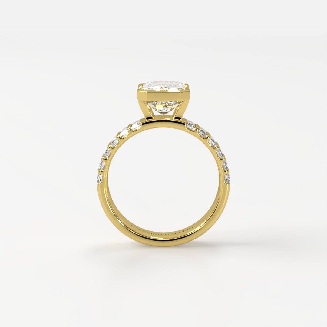 A modern take on timeless elegance, the Lyra engagement ring features a striking emerald-cut diamond, securely cradled in a sleek half-bezel setting. Flanked by delicate baguette diamond accents, this design enhances the centre stone’s clean lines and brilliance. Expertly crafted, the Lyra is a refined statement of sophistication and enduring beauty.