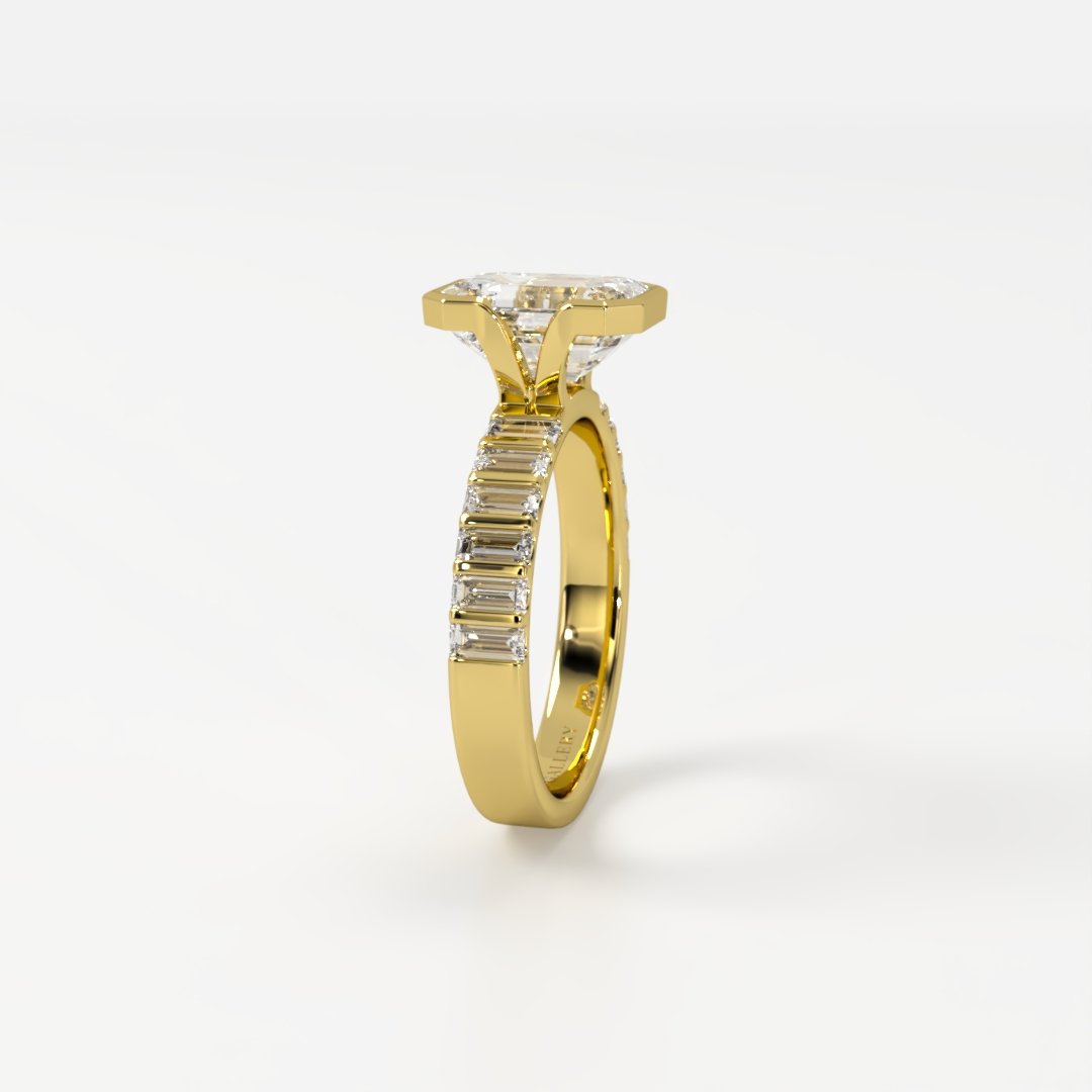Lyra Emerald Cut Half-Bezel Ring with Baguette Accents