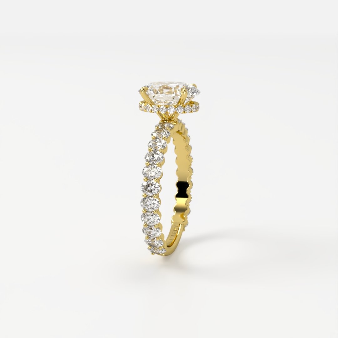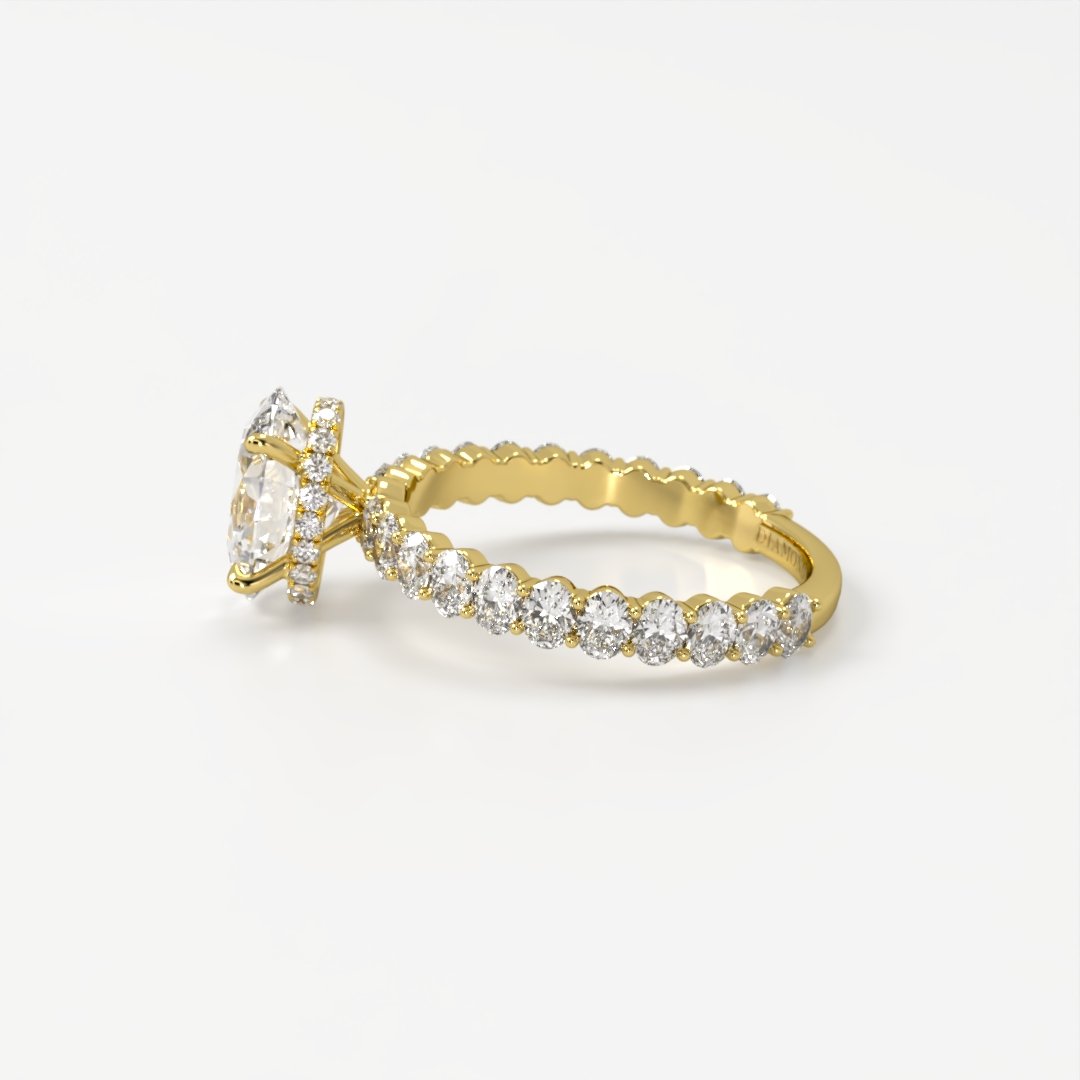 Mae Exquisite Oval Solitaire with Oval Accent Band & Hidden Halo