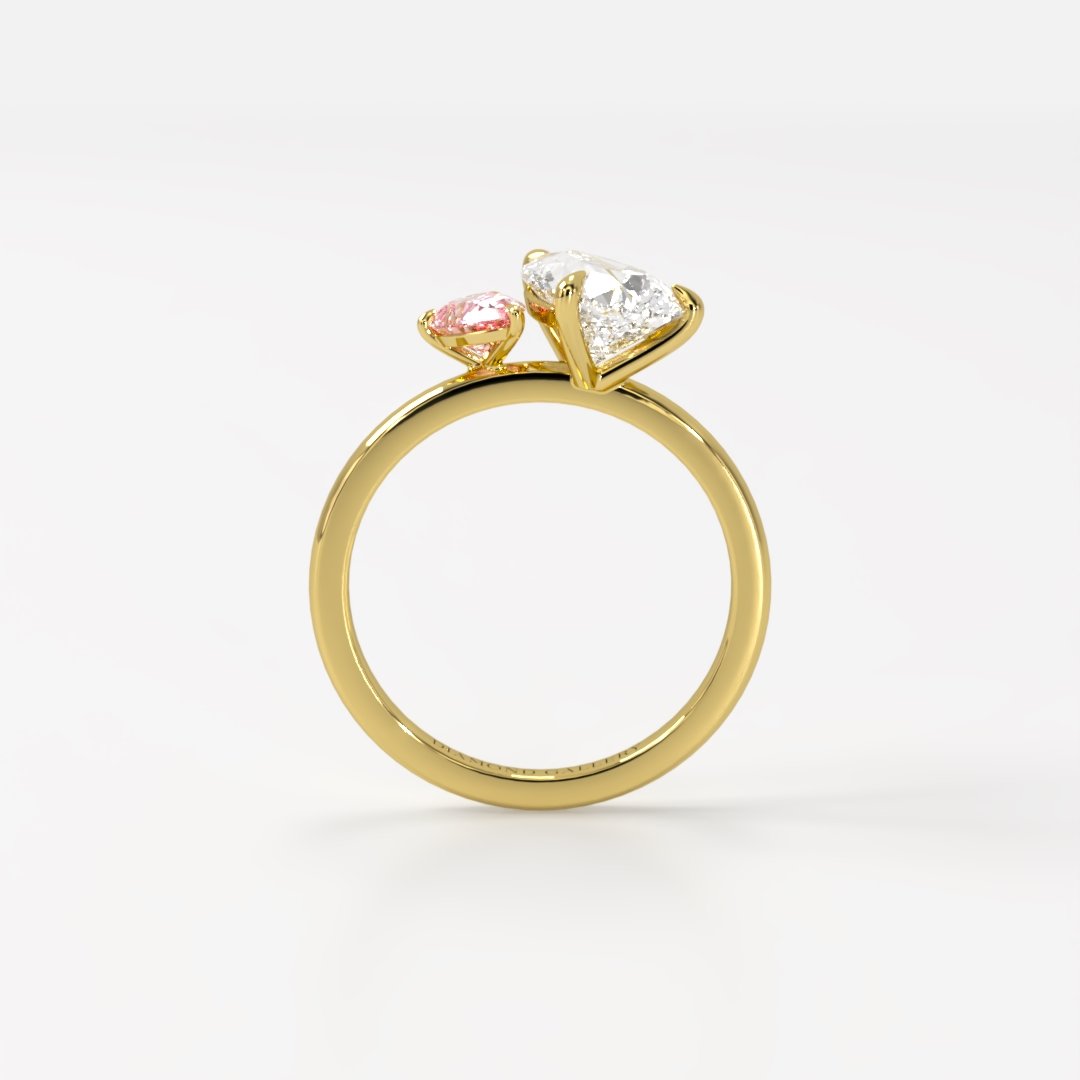 Introducing the Marie, a Twin Pear Toi et Moi engagement ring that embodies elegance and modern romance. Featuring a luminous pear-shaped lab-grown diamond alongside a delicate pink lab-grown pear diamond, this design symbolises the harmony of two unique yet connected souls. A perfect fusion of brilliance and sophistication, the Marie is a timeless statement of love and individuality.