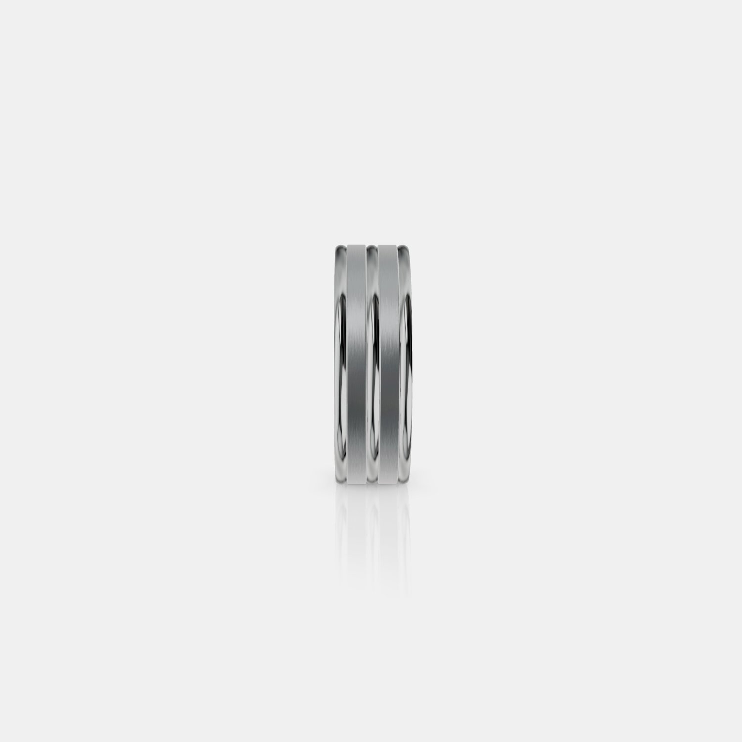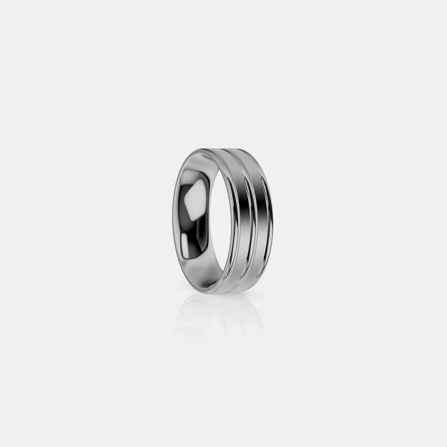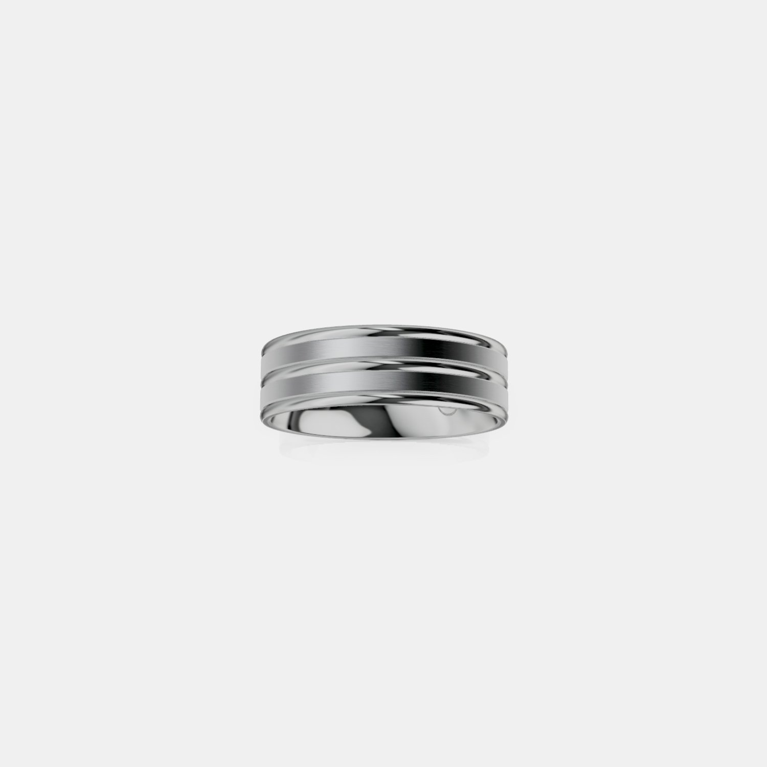 For a modern and sleek look, choose the Milton Keys Grooved Wedding Band. Made to order.