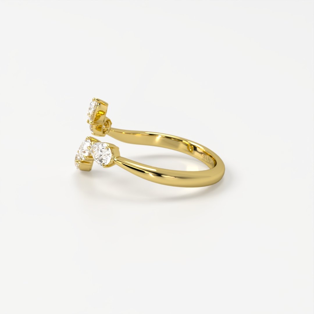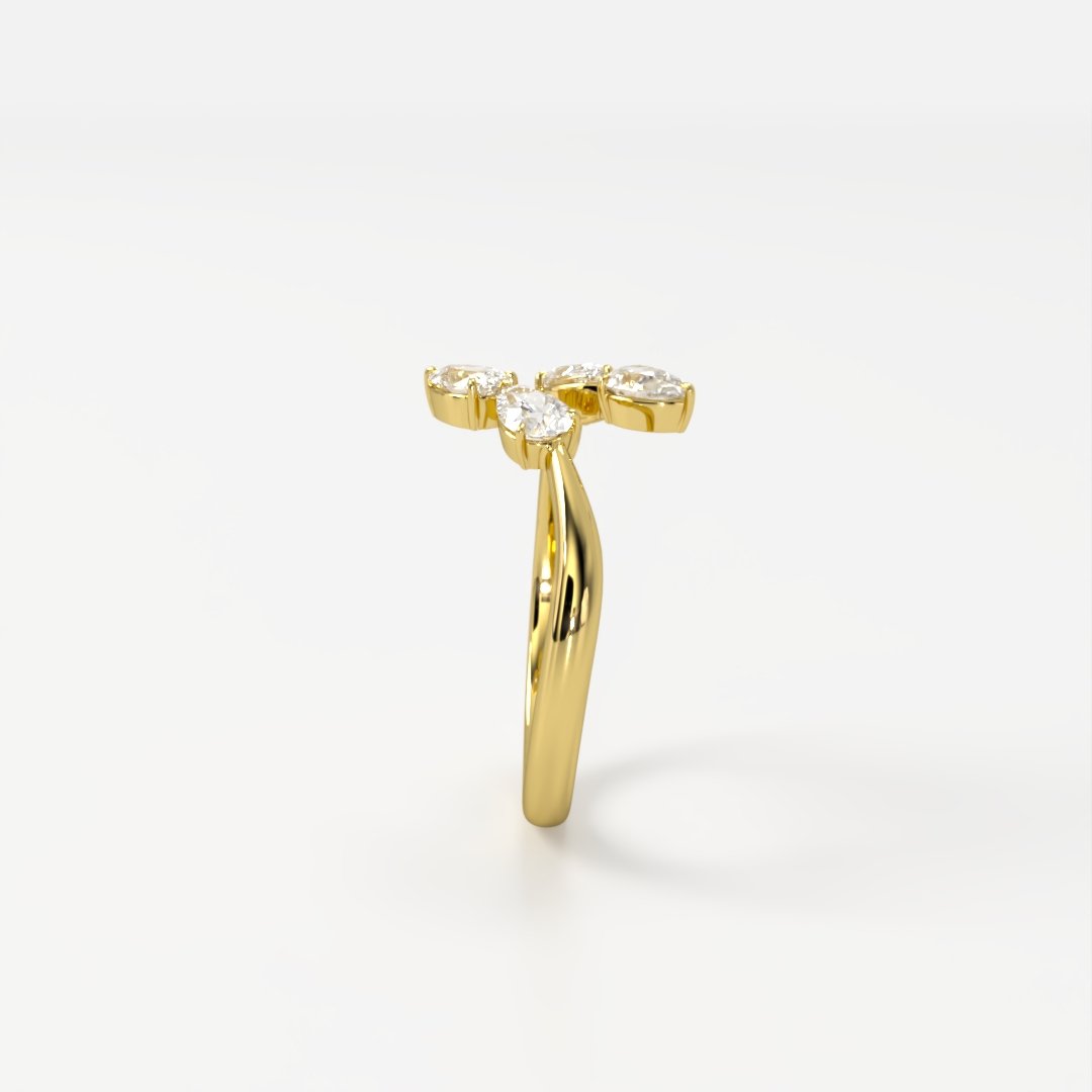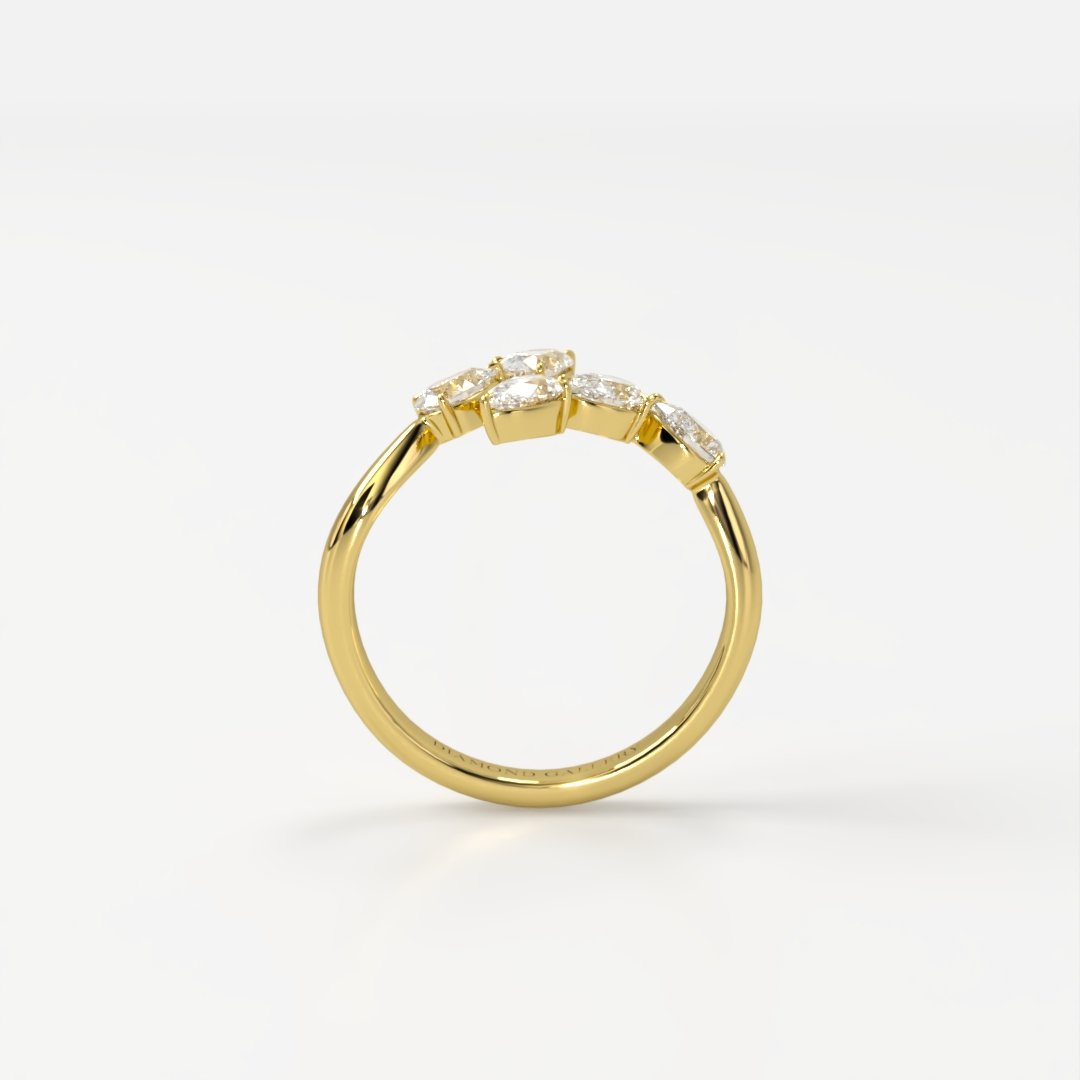 A graceful fusion of fluidity and light, the Pavella Diamond Ring showcases five pear-cut diamonds delicately poised in a modern wrap-around silhouette. Crafted in 18ct gold, this sculptural design captures movement and balance, with each diamond mirroring the other in perfect harmony.