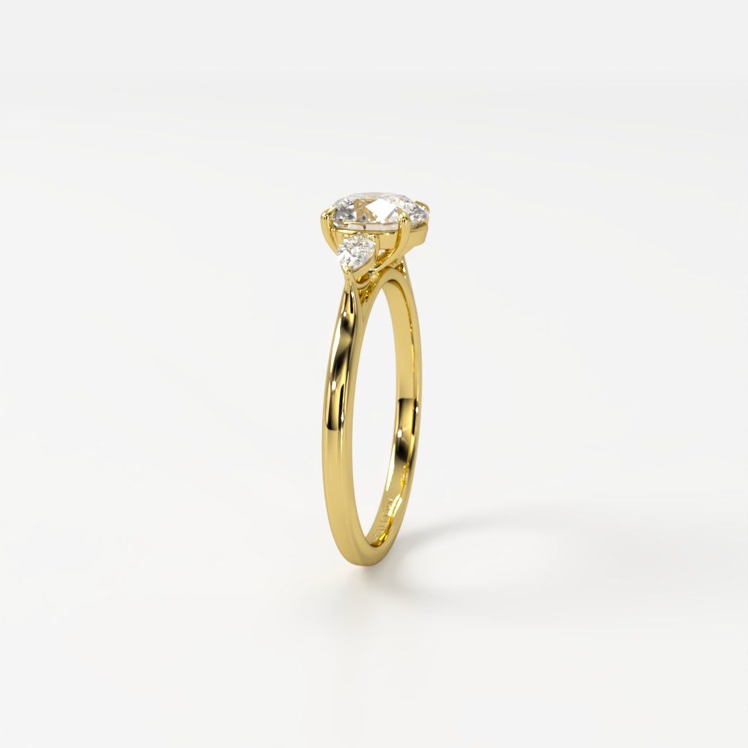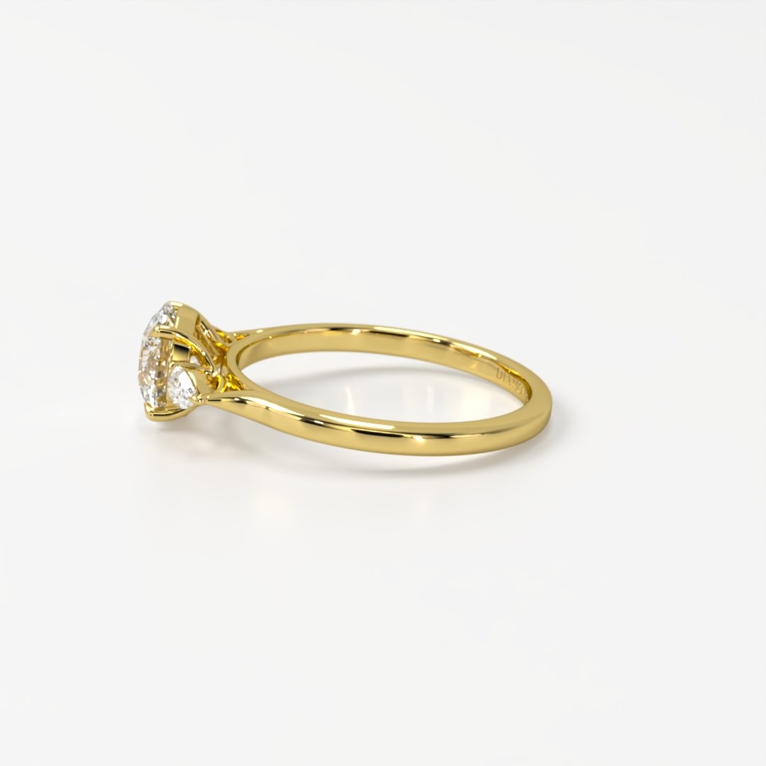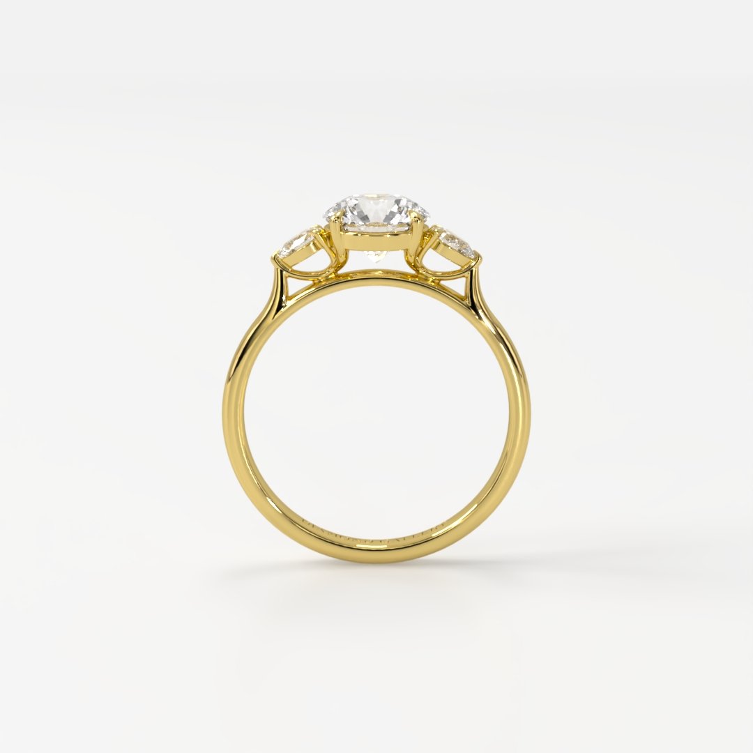 This stunning engagement ring features a breathtaking central diamond, available in a variety of shapes, offering a perfect balance of timeless beauty and personal style. perfectly placed besides the central stone on each side are two perfectly cut pear-shaped diamonds, adding a touch of elegance and brilliance from every angle.