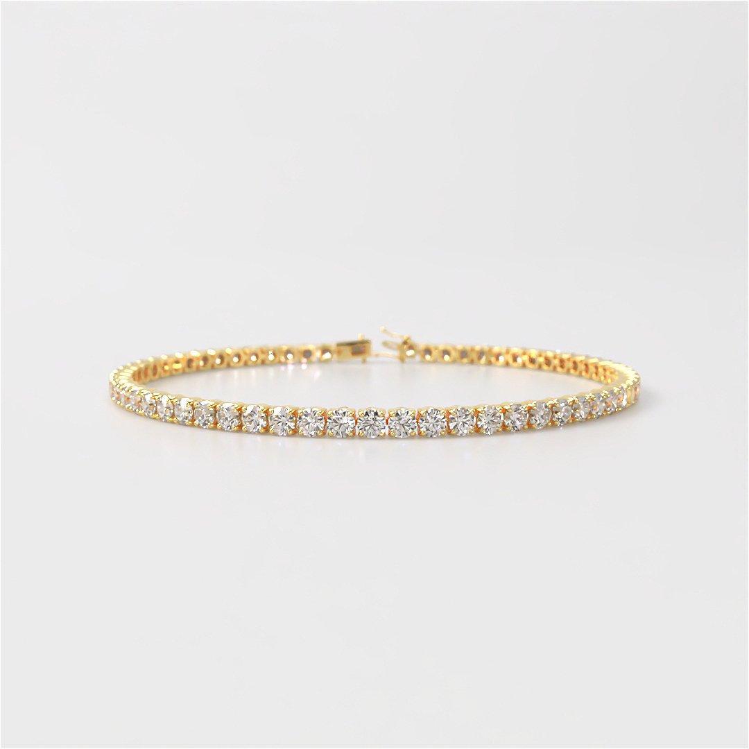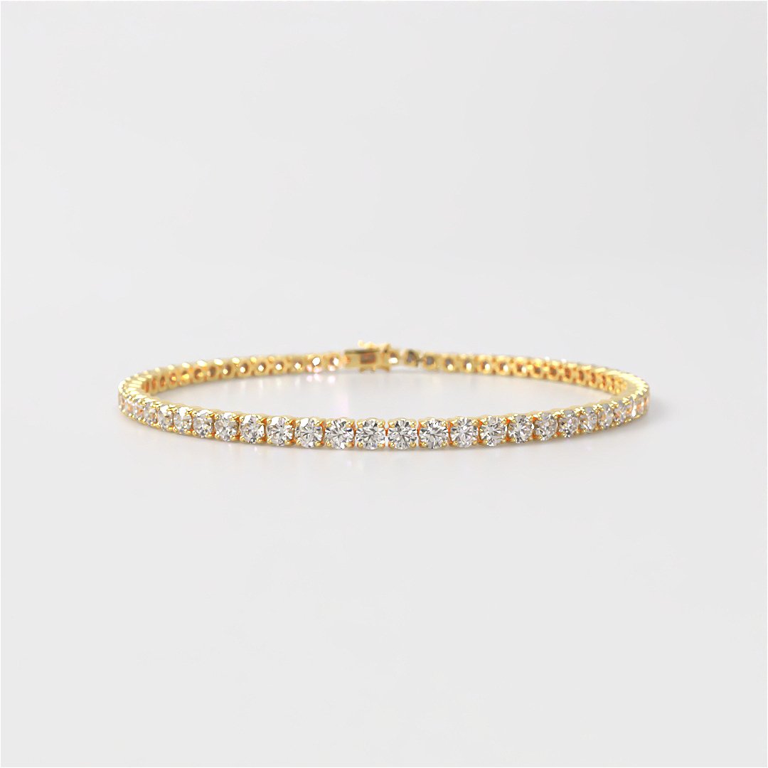 Exude timeless luxury with the Ruby 4 Carat Lab-Grown Diamond Classic Tennis Bracelet, an exquisite creation in rich 18ct yellow gold.