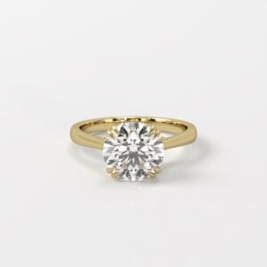 A timeless solitaire engagement ring featuring a concealed halo of diamonds, crafted to accentuate the eternal brilliance of a round-brilliant diamond.