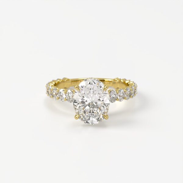 Mae Exquisite Oval Solitaire with Oval Accent Band & Hidden Halo