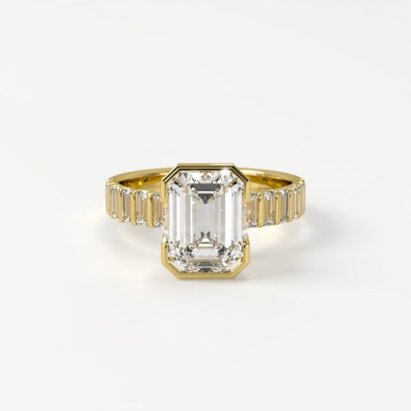Lyra Emerald Cut Half-Bezel Ring with Baguette Accents