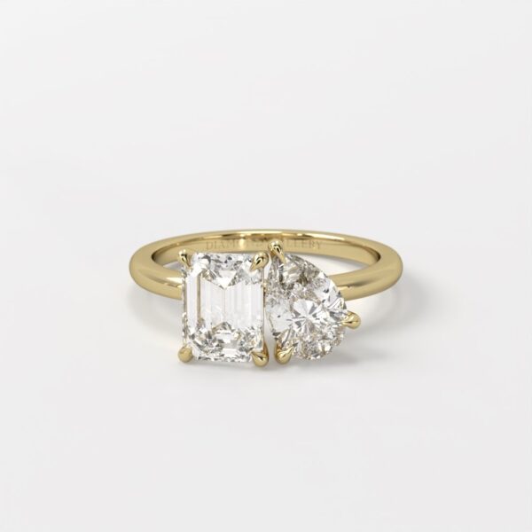 Lyra Emerald Cut Half-Bezel Ring with Baguette Accents